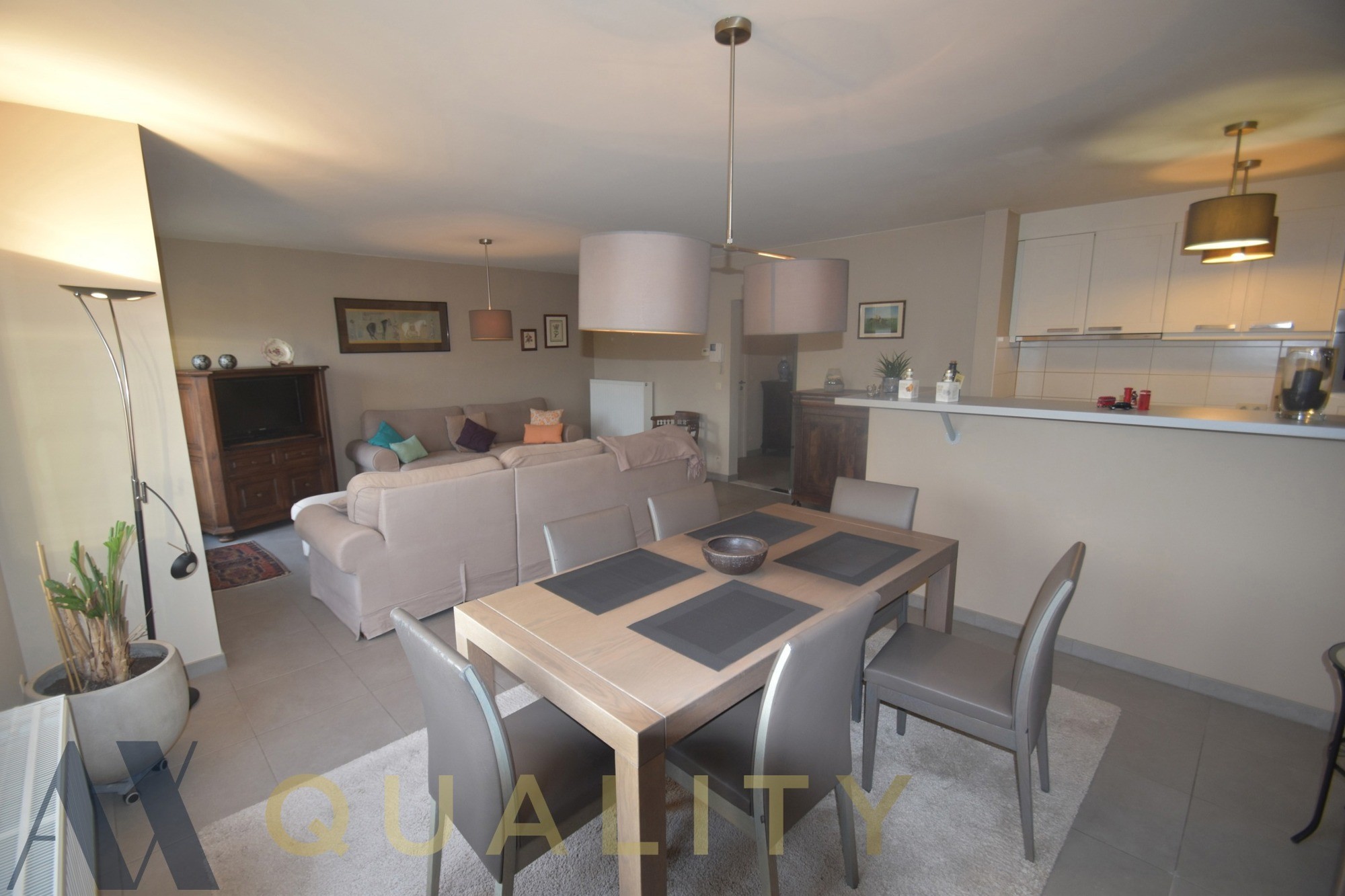 IN OPTIE Energiezuinig, instapklaar 2-slaapkamer dakappartement met een aangenaam zuidoost georiënteerd terras, een binnen autostaanplaats en een private berging. Rustig maar centraal gelegen in het hart van de gemeente, op wandelafstand van winkels, scholen, sportcentrum... Het appartement biedt een lichtrijke leef-en eetruimte, een open uitgeruste keuken met oa. vaatwasser, kookplaat, oven, koelkast..., een nachthal, een apart toilet met handwasser, 2 ruime slaapkamers, een berging/wasplaats, een badkamer met oa. ligbad, dubbele wastafel en spiegelkast en een terras bereikbaar via de living. Op de gelijkvloerse verdieping is er nog een binnen autostaanplaats in een gemeenschappelijke garage en een private berging. Het appartement heeft een praktische indeling en biedt hedendaags comfort met oa CV op aardgas, een videofoon, PVC schrijnwerk met dubbele beglazing... EPC 144 kWh/m²/j. , energielabel: B en unieke code: 3747567-RES-1. Conforme elektrische installatie. Dit kleinschalige gebouw heeft geen lift, wat zorgt voor lage algemene kosten. Ideaal als starterswoning of investering. Voor een plaatsbezoek: 052/52.05.05, axel@ax-quality.be